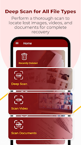 - يحتوي التطبيق على ميزة Deep Scan التي تمسح الجهاز بشكل أعمق لاستعادة الصور المحذوفة حتى بعد مرور وقت طويل على حذفها.